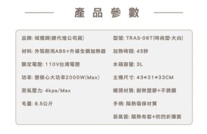 水桶容量加大可連續使用2.5小時 蒸氣業界最強最大